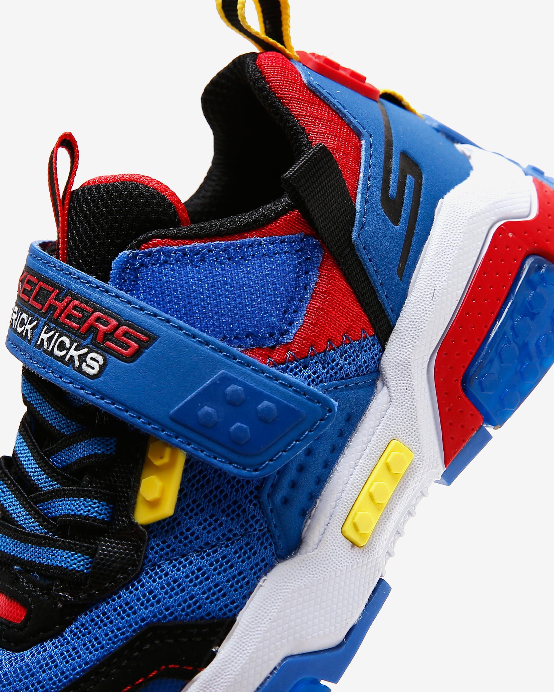 Sayada file kumaş, sentetik deri paneller, esnek bağcıklı ön panel ve cırt cırtlı kapama ile üretilmiştir. Yarı saydam detaylara sahip esnek ve tam çekişli dış taban ile üretilmiştir. Topuk yüksekliği 2,54 cm'dir. Makinede yıkanabilir. Skechers® logo detayı bulunur. Brick Kicks temalı çok renkli ayakkabı tasarımına sahiptir. Skechers Air-Cooled Memory Foam® yastıklı konforlu iç taban teknolojisi mevcuttur. Skechers Brick Kicks 2.0 erkek çocuk spor ayakkabı ile çocuğunuz renkli bir stile sahip olsun. Sayasında rengarenk detaylara sahip file kumaş ve sentetik deri bir arada kullanılmıştır. Brick Kicks temalı legoya benzer kontrast, canlı renkli detayları ile çok tarz bir erkek çocuk spor ayakkabı modeli olarak tasarlanmıştır. Skechers Brick Kicks 2.0 erkek çocuk spor ayakkabının iç ve orta tabanı özel bir yastıklama metodu ile üretilmiştir. Bu orta ve iç taban her adımda darbe etkisini emerek çocuğunuzun bunu hissetmemesini sağlar. Skechers Brick Kicks 2.0 erkek çocuk spor ayakkabı sayesinde çocuğunuz adeta bulutlarda yürüyormuş gibi rahat eder. Skechers Brick Kicks 2.0 erkek çocuk spor ayakkabının üst kısmında bulunan esnek bağcıklar ve cırt cırtlı tasarımı hem ayağını iyi kavramasını hem de giyip çıkartırken daha rahat etmesini sağlar.Dış tabanı ise oldukça hafif ve kaliteli bir kauçuktan üretilmiştir, bu dış taban sayesinde yüksek yer tutuşu ve denge sağlayan Skechers Brick Kicks 2.0 erkek çocuk spor ayakkabı ile çocuğunuz gün boyunca özgürce hareket edip motivasyonunu yüksek tutacaktır.